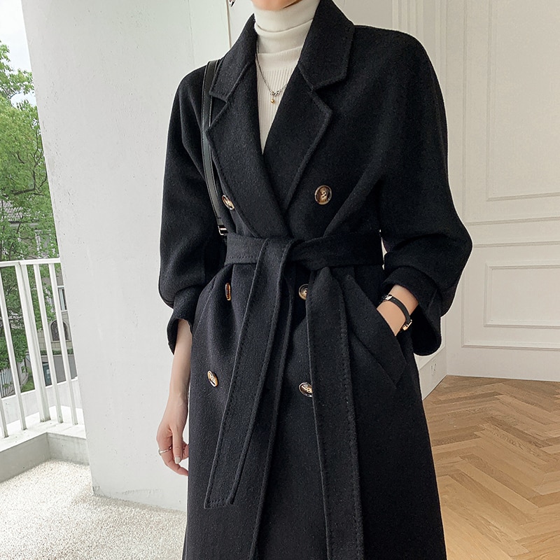 Autumn and winter new cashmere coat Women's classic double-breasted women's wool long coat