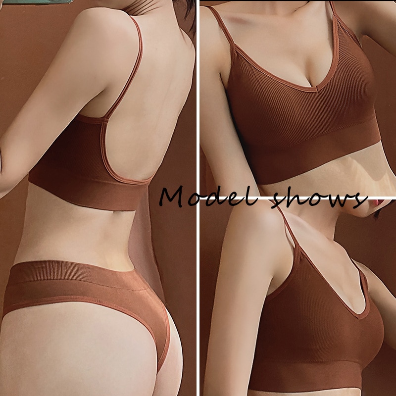 2023 New Trendy Backless Push Up Underwear Set Women Seamless Bra Set Sexy G-String Female Soft 2pcs Wireless Lingerie Sets