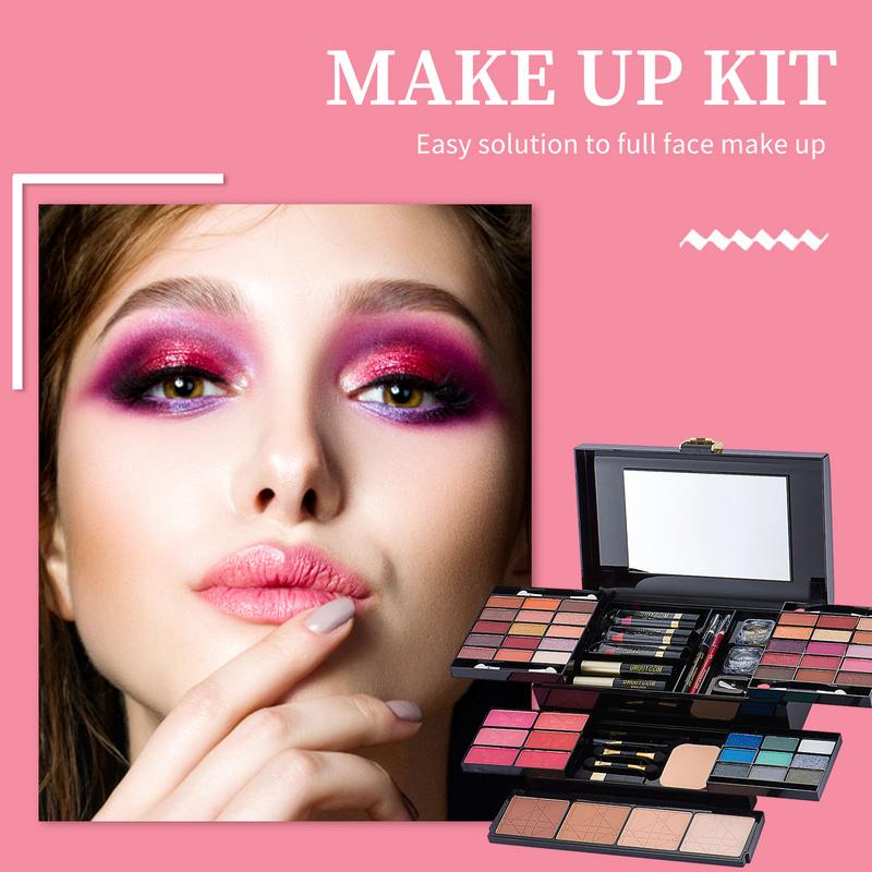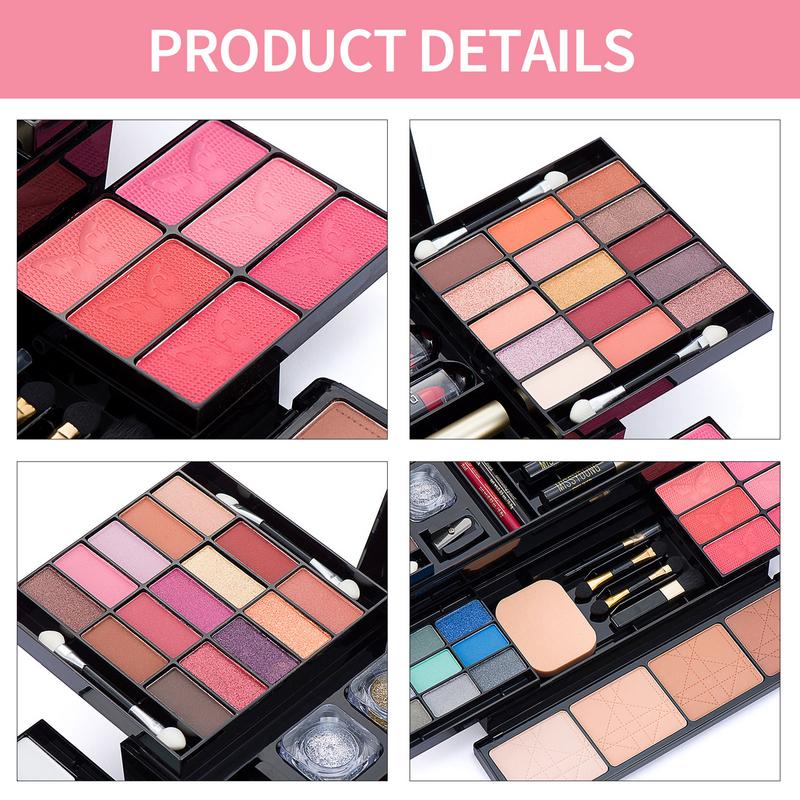 • This makeup kit can meet your basic makeup needs. It can create a perfect makeup look for you. It contains lip gloss, eye shadow, blush, contouring, lipstick, highlighter, brush, etc. It is easy to carry with a handle. It is portable, you can use it anywhere. It is equipped with mirrors and corresponding recesses for cosmetics and tools. It has many functions, is very complete, suitable as a birthday gift, holiday gift to friends or family, your friends will be very satisfied.