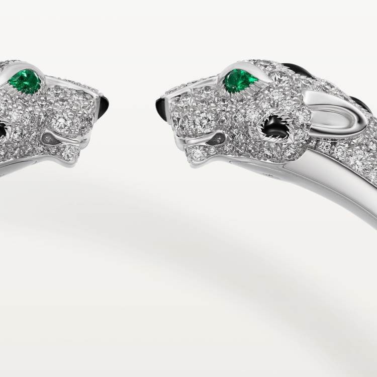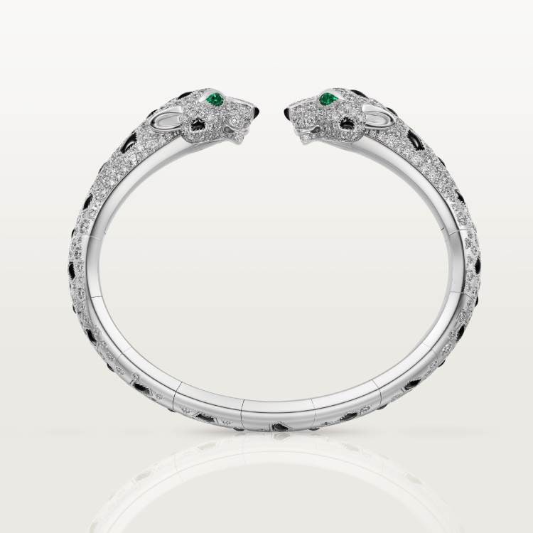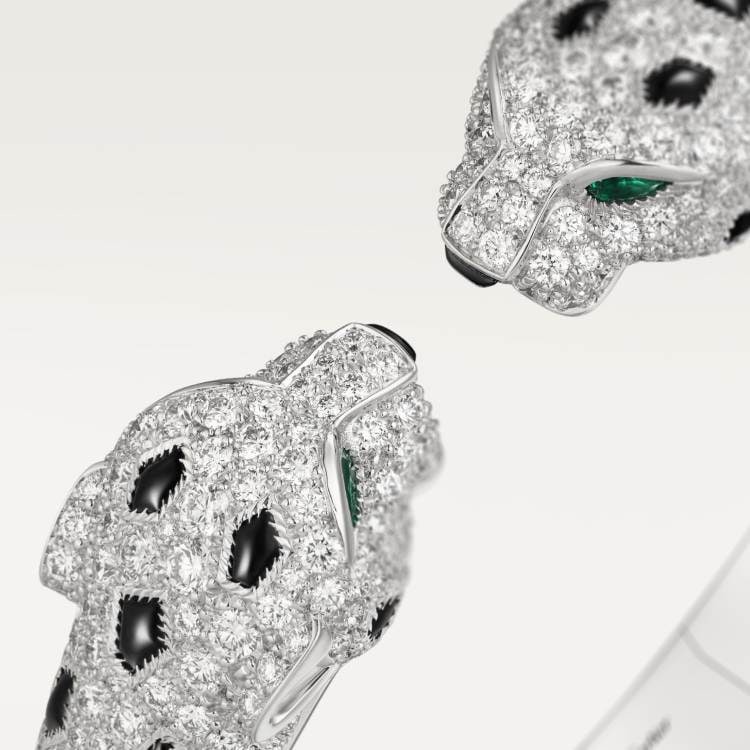 PANTHERE DE CARTIER Cartier panther bracelet, 750‰ white gold, onyx, set with 4 emeralds and 485 round brilliant-cut diamonds, total weight 6.25 carats (applicable size: 17).